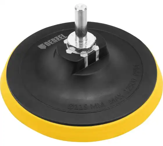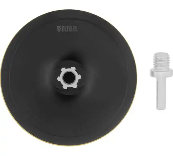 Тарелка опорная для дрели и УШМ с липучкой 115 мм, с адаптером c М14 на d8 мм Denzel 76250