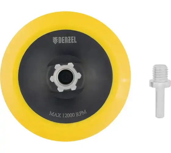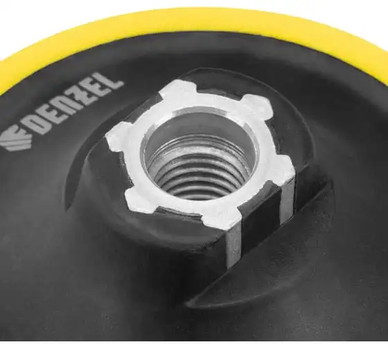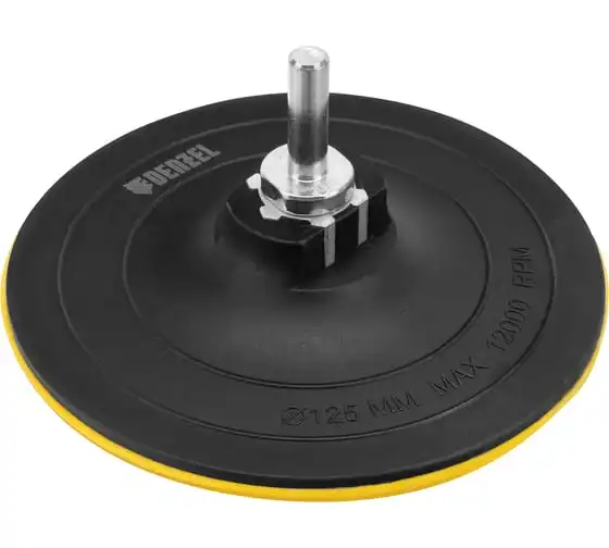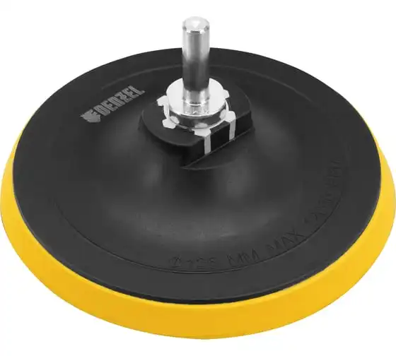Тарелка опорная для дрели и УШМ с липучкой 125 мм, с адаптером c М14 на d8 мм Denzel 76251