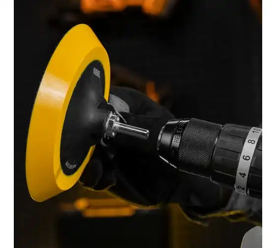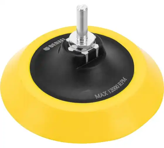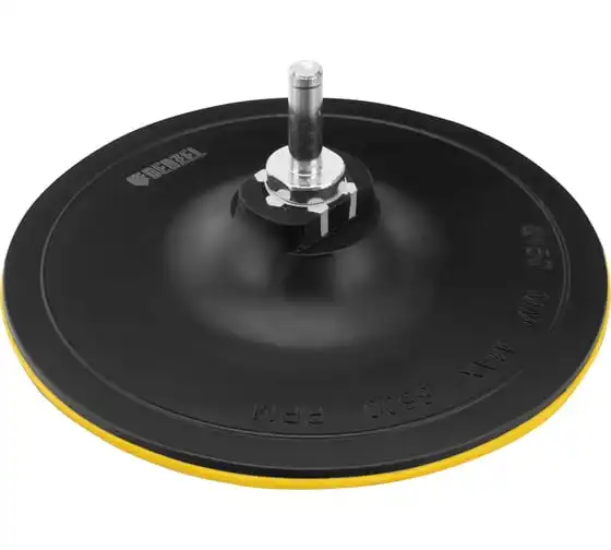 Тарелка опорная для дрели и УШМ с липучкой 150 мм, мягкая, с адаптером c М14 на d8 мм Denzel 76249