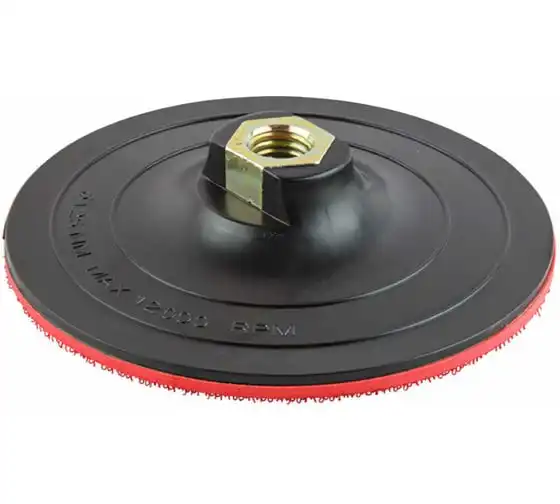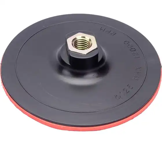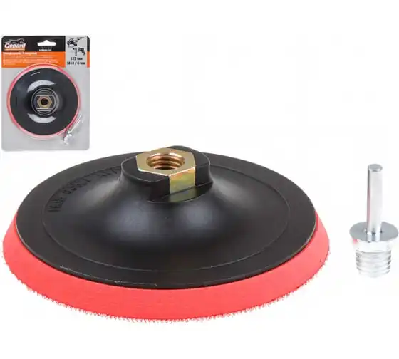 Тарелка опорная для дрели и УШМ с липучкой 125 мм, твердая, с адаптером c М14 на d8 мм Denzel 76254