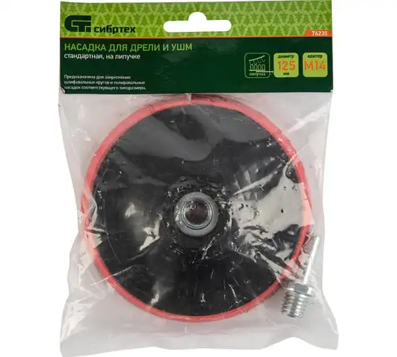 Тарелка опорная для дрели и УШМ с липучкой 125 мм, мягкая, с адаптером c М14 на d8 мм Denzel 76248