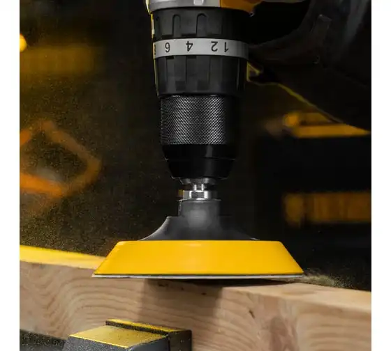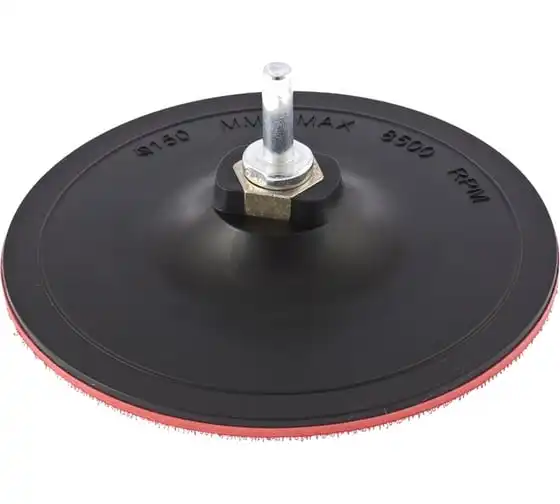 Тарелка опорная для дрели и УШМ с липучкой 150 мм, твердая, с адаптером c М14 на d8 мм Denzel 76255