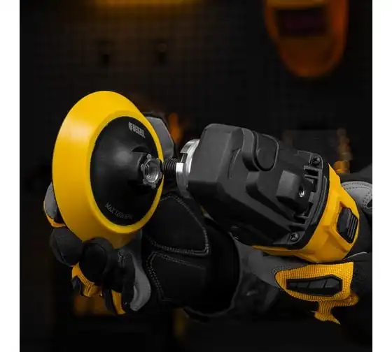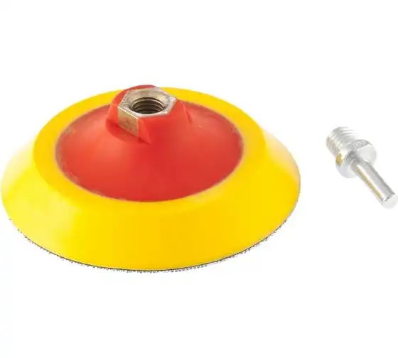 Тарелка опорная для дрели и УШМ с липучкой 115 мм, мягкая, с адаптером c М14 на d8 мм Denzel 76247