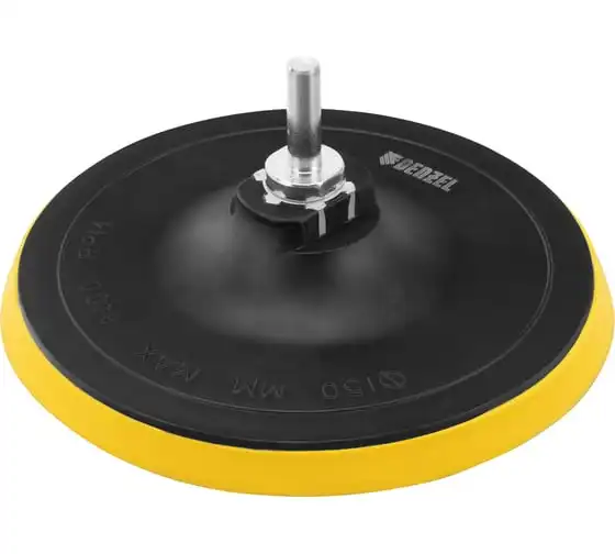 Тарелка опорная для дрели и УШМ с липучкой 150 мм, с адаптером c М14 на d8 мм Denzel 76252