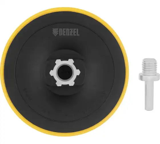 Тарелка опорная для дрели и УШМ с липучкой 115 мм, твердая, с адаптером c М14 на d8 мм Denzel 76253