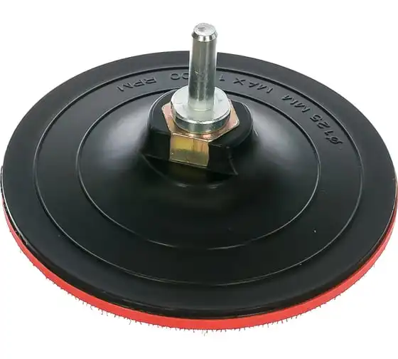 Тарелка опорная для дрели и УШМ с липучкой 125 мм, с адаптером c М14 на d8 мм Denzel 76251