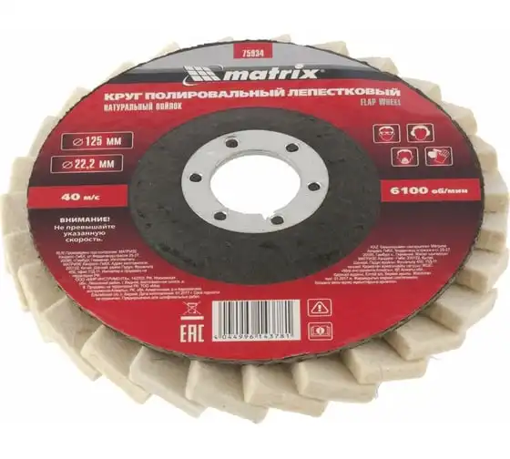Круг полировальный лепестковый из натурального войлока (125х22,2 мм) MATRIX 75934