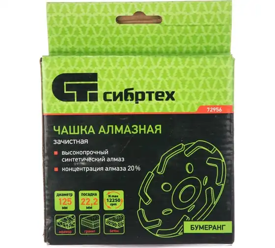 Чашка алмазная зачистная Бумеранг (125 мм; 22.2 мм) СИБРТЕХ 72956
