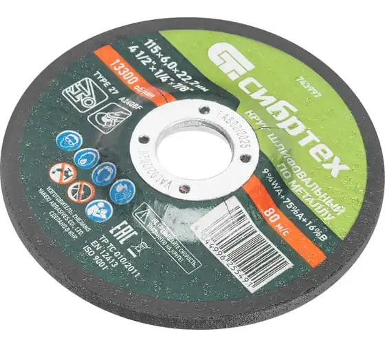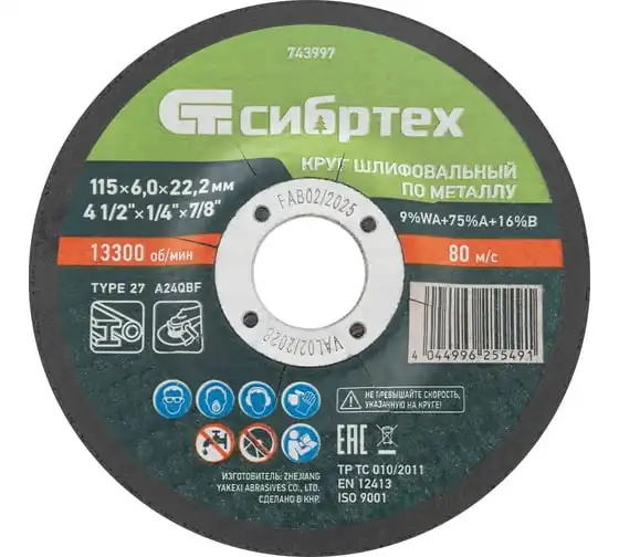 Круг шлифовальный по металлу СИБРТЕХ 115x6,0x22,2 мм, 9%WA+75%A+16%B 743997