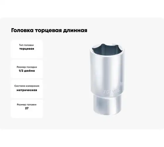Головка торцевая длинная 6-гранная 27 мм, 1/2"DR TOPTUL BAEE1627