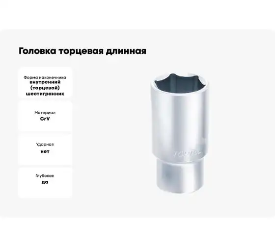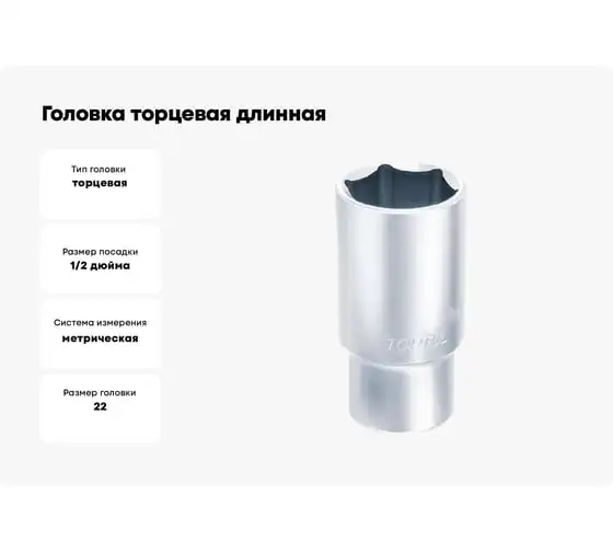 Головка торцевая длинная 6-гранная 22 мм, 1/2"DR TOPTUL BAEE1622