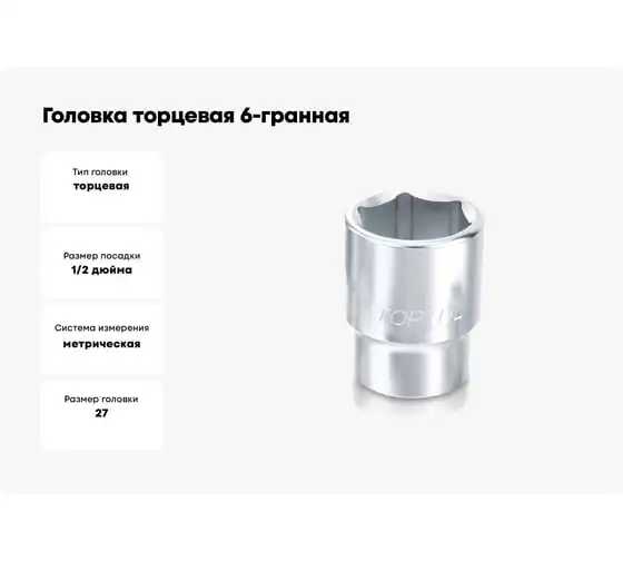 Головка торцевая 6-гранная 27 мм, 1/2"DR TOPTUL BAEA1627
