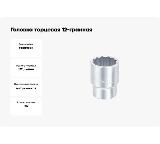 Головка торцевая 12-гранная 25 мм, 1/2"DR TOPTUL BAEB1625