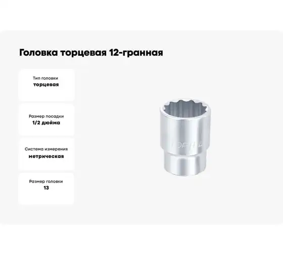 Головка торцевая 12-гранная 13 мм, 1/2"DR TOPTUL BAEB1613