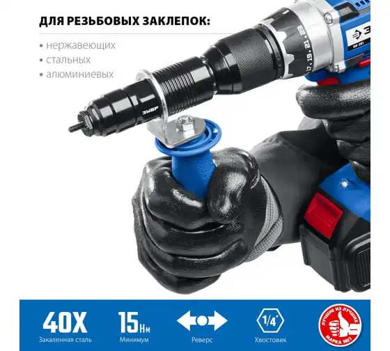 Насадка-заклепочник ЗУБР Профессионал НР-М8 М3 - М8, на шуруповерт 31221