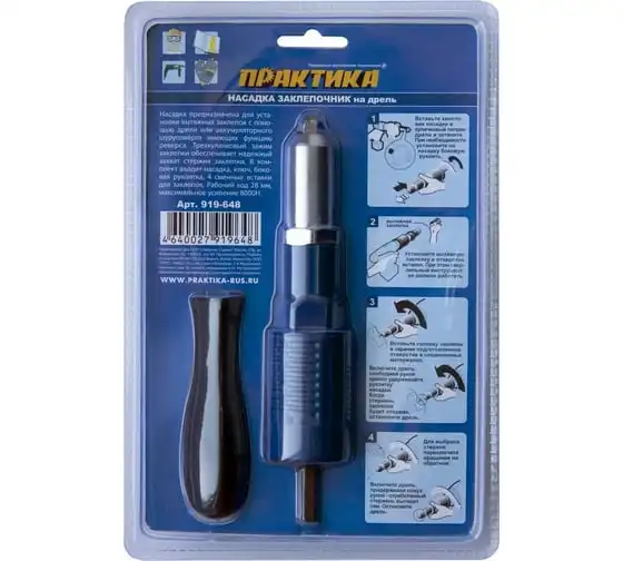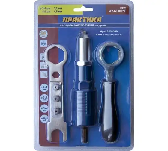 Насадка для шуруповерта для заклепок 2,4-4,8 мм ПРАКТИКА 919-648