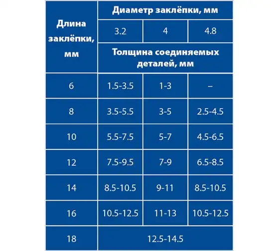 Размер заклепок (сталь):