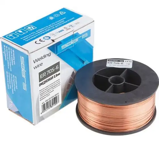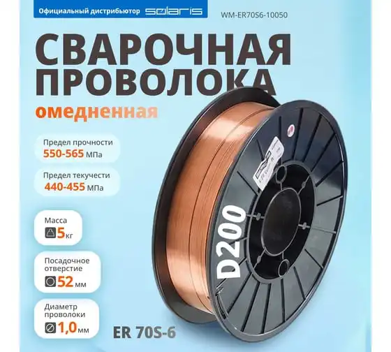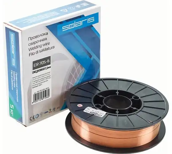 Проволока сварочная омедненная ER 70S-6 (1 мм; катушка D200; 5 кг) SOLARIS WM-ER70S6-10050