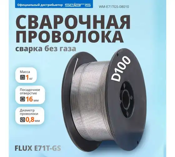 Проволока сварочная FLUX E71T-GS 0.8 мм, 1 кг SOLARIS WM-E71TGS-08010