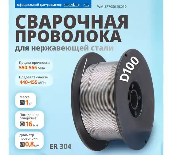 Проволока сварочная ER 304 0.8 мм, для нержавеющей стали, 1 кг SOLARIS WM-ER304-08010
