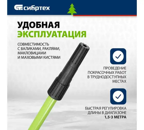 Ручка телескопическая металлическая СИБРТЕХ 1,5-3 м 81246