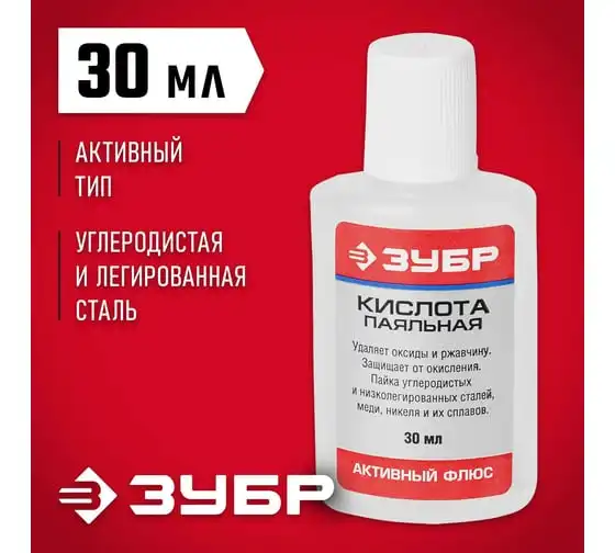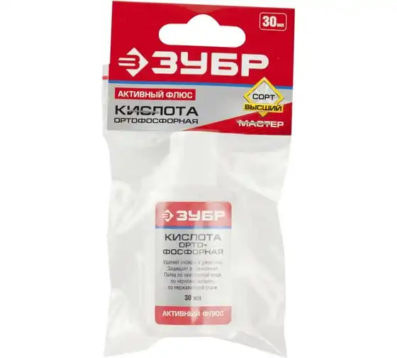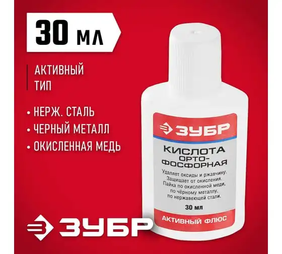 Активный флюс, ЗУБР орто-фосфорная кислота 30мл с 55490-030
