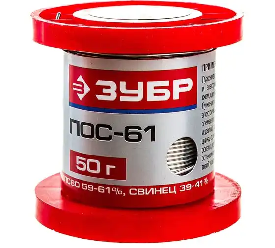 Припой ПОС 61 (1 мм; 50 г; проволока) Зубр 55450-050-10