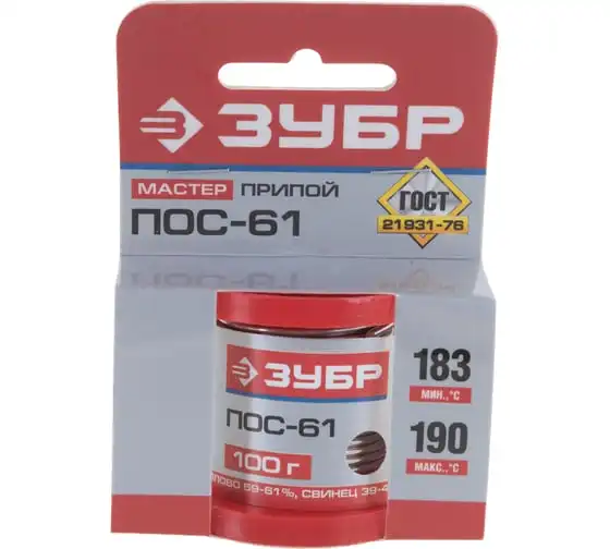 Припой ПОС 61 (1 мм; 100 г; проволока) Зубр 55450-100-10