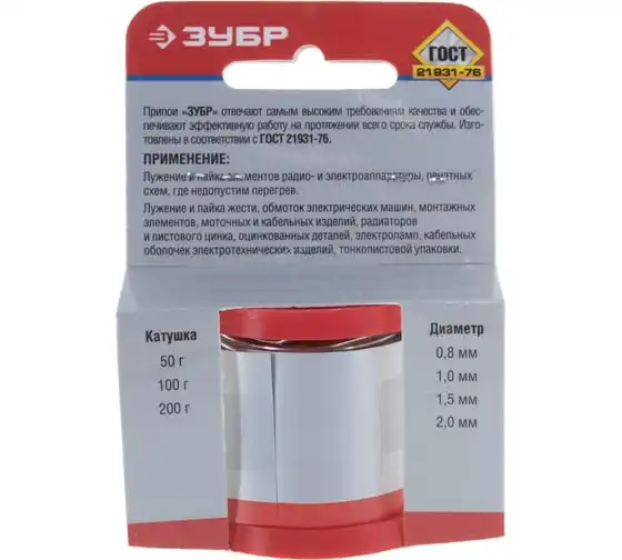 Припой ПОС 61 (2 мм; 100 г; проволока) Зубр 55450-100-20