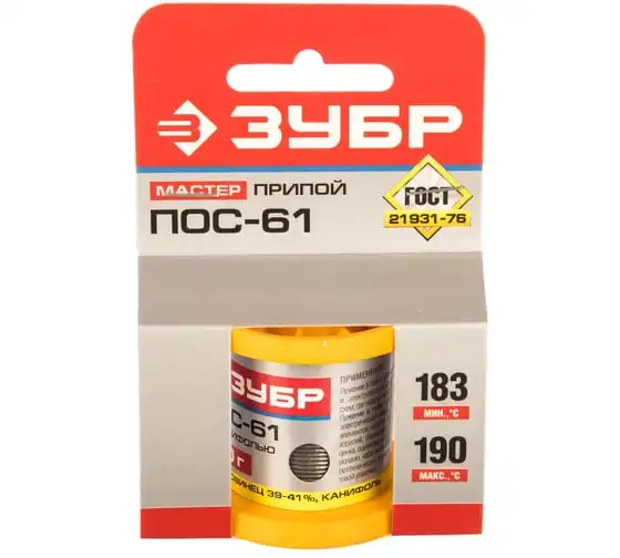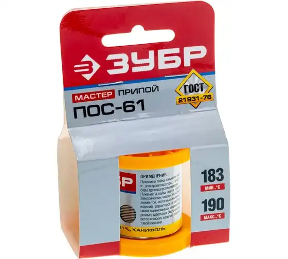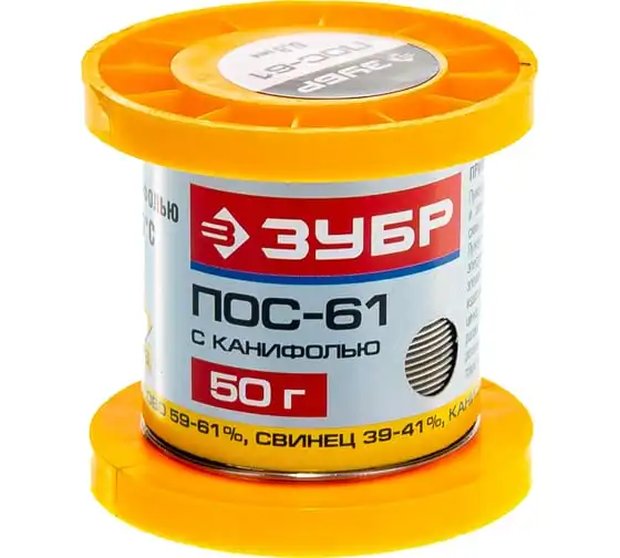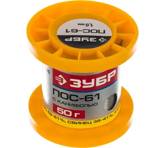 Припой ПОС 61 (1 мм; 50 г; трубка с канифолью) Зубр 55450-050-10C