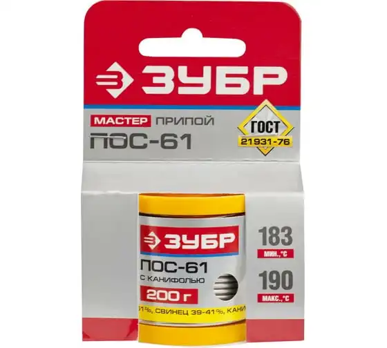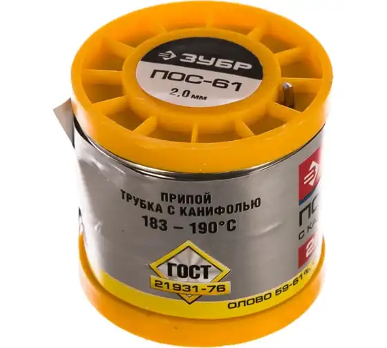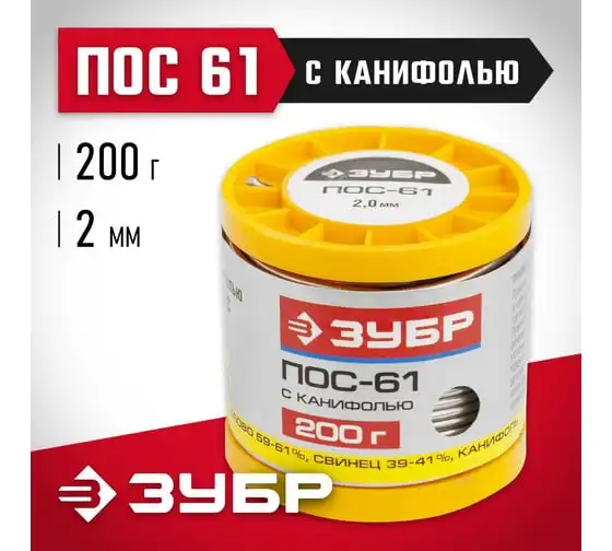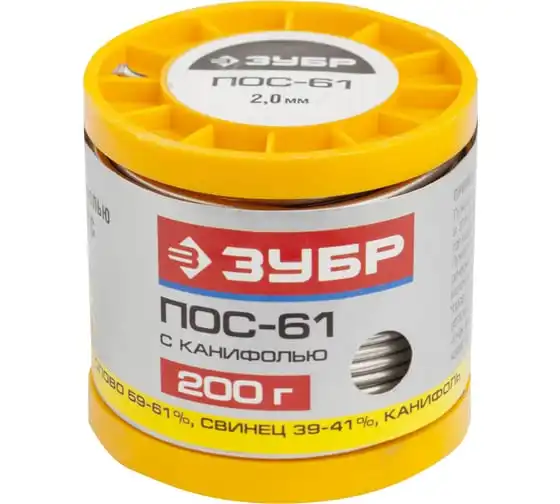 Припой ПОС 61 (2 мм; 200 г; трубка с канифолью) Зубр 55450-200-20C