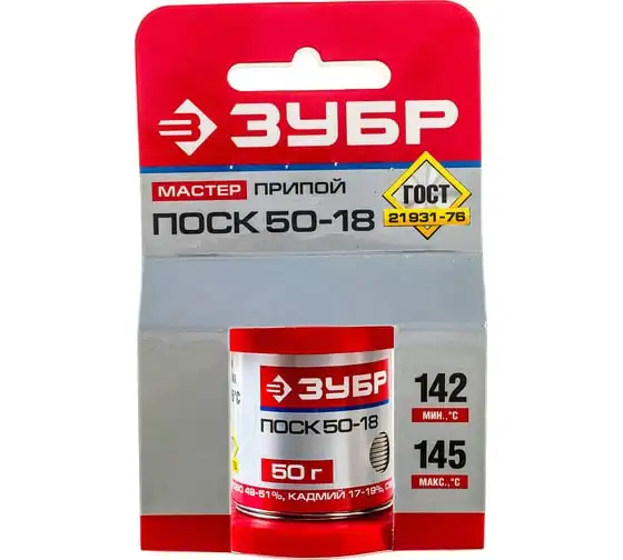 Припой ПОСК 50-18 (1 мм; 50 гр; проволока) Зубр 55454-050-10