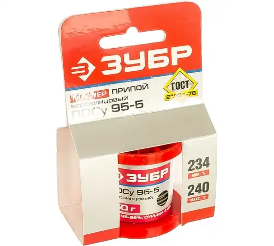 Припой ПОСу 95-5 (1 мм; 50 гр; проволока) Зубр 55455-050-10