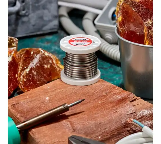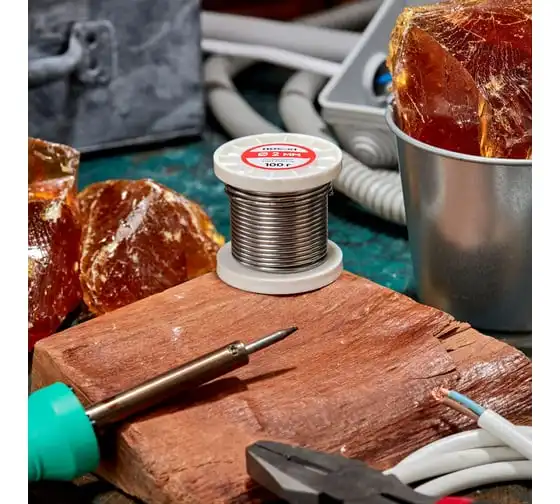 Припой с канифолью ПОС-61, 100 г, 3 мм, (Sn 61, Pb 39), катушка REXANT 09-3174