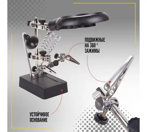 Зажим для пайки с лупой "Третья рука" SPARTA 914605