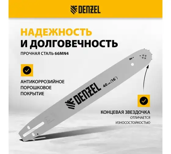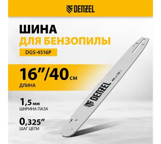 Шина для бензопилы DGS-4516P длина 40 см (16"), шаг 0.325", паз 1.5 мм, 64 звена Denzel 59814