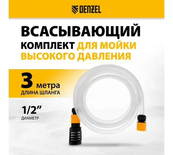 Всасывающий комплект для моечных машин высокого давления 3 м, диаметр шланга 1/2 DENZEL 58307