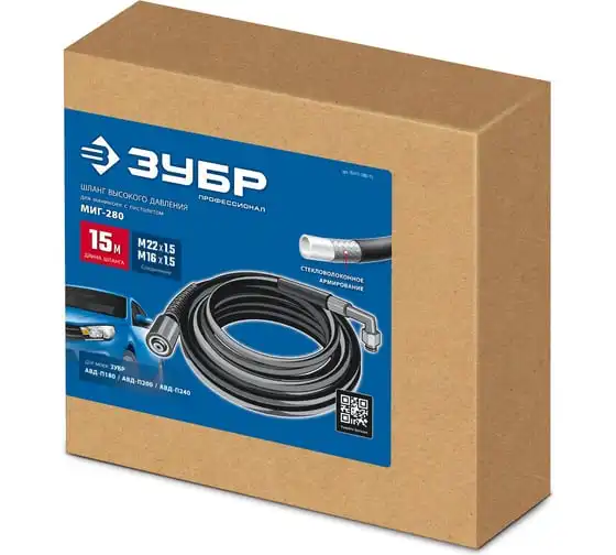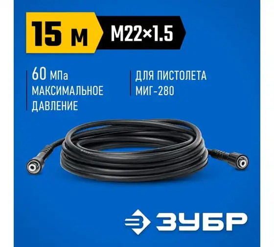 Шланг высокого давления ЗУБР Миг-280 15 м, для минимоек с пистолетом 70411-280-15