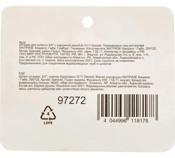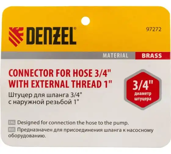 Штуцер для шланга 3/4" с наружной резьбой 1" DENZEL 97272