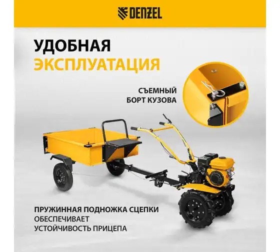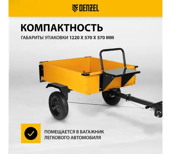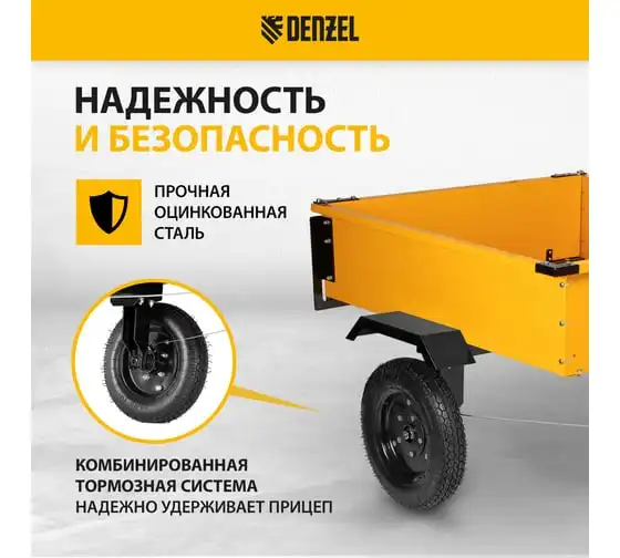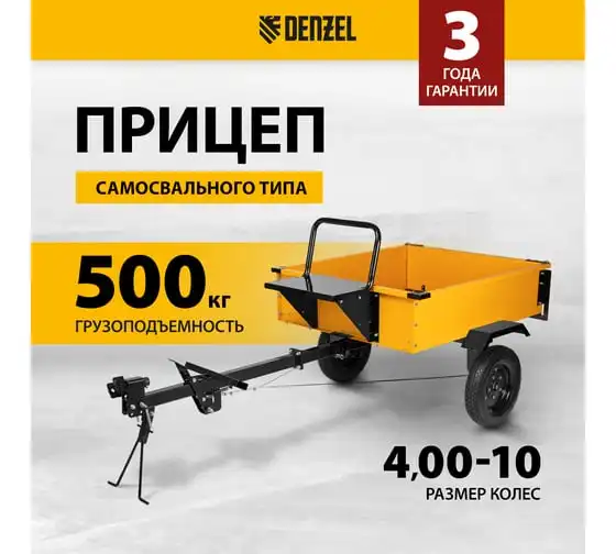 Прицеп для мотоблока TT-500 с оцинкованным кузовом и регулируемой сцепкой, 500 кг, колеса 4.00-10, в упаковке Denzel 59950