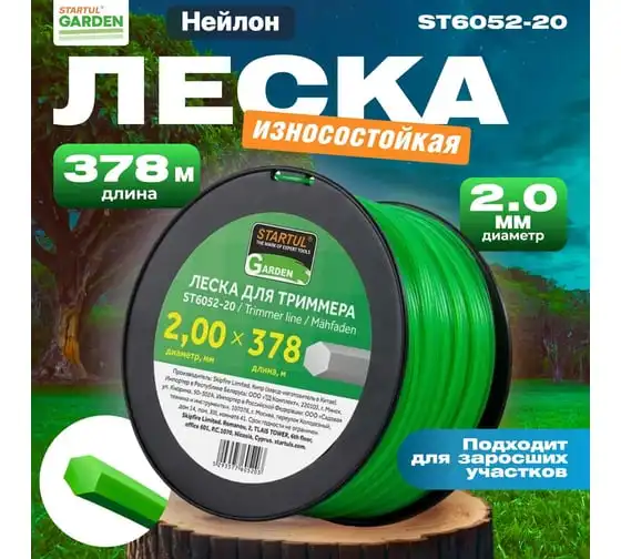 Леска GARDEN 2.0 мм, 378 м, шестигранное сечение STARTUL ST6052-20