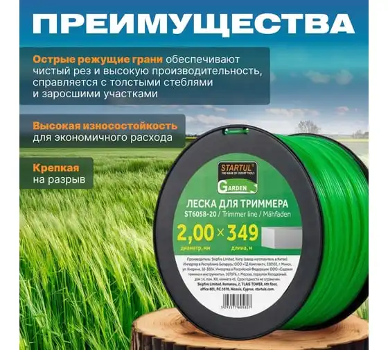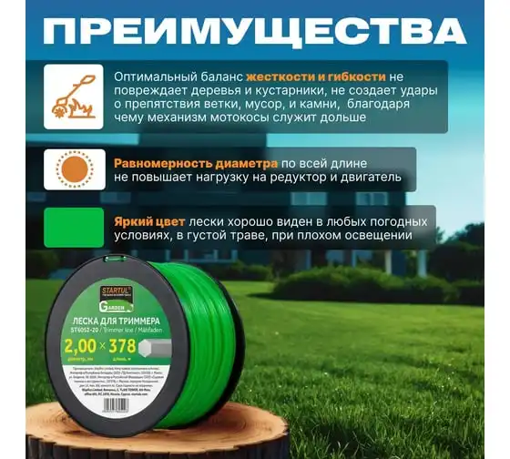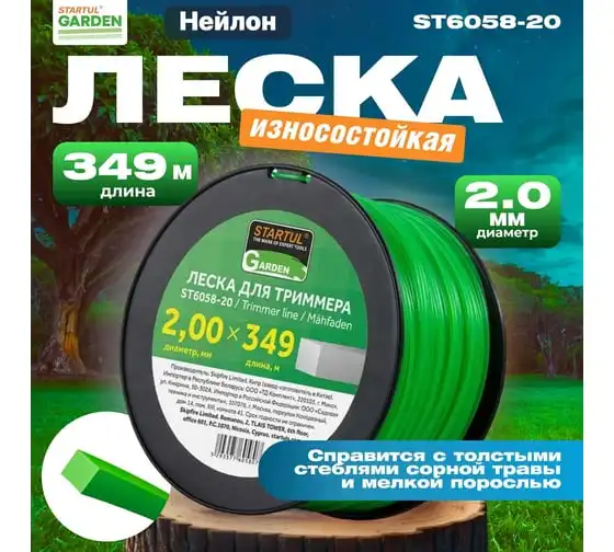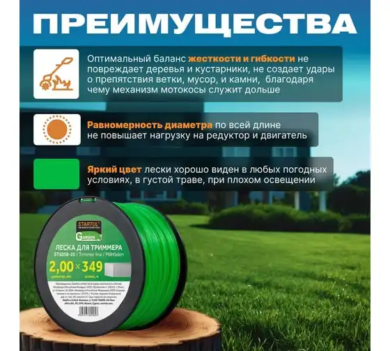 Леска для триммера Garden 2 мм, 349 м, сечение квадрат STARTUL ST6058-20