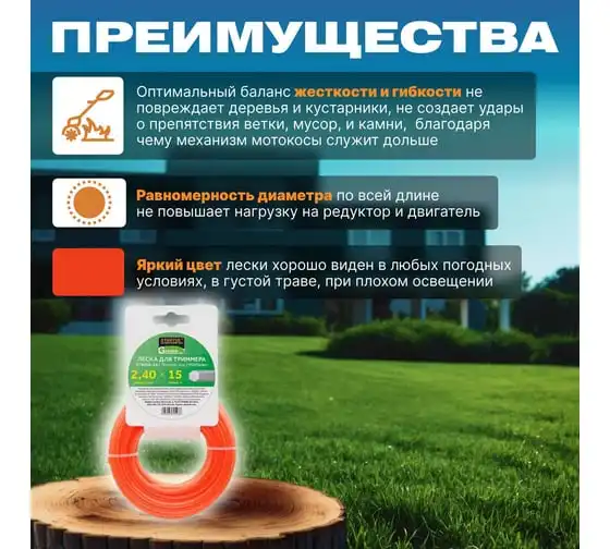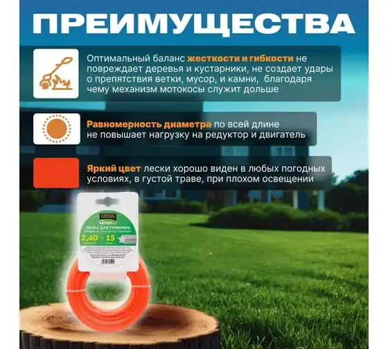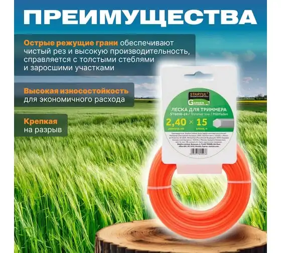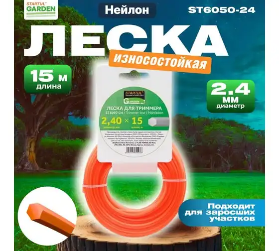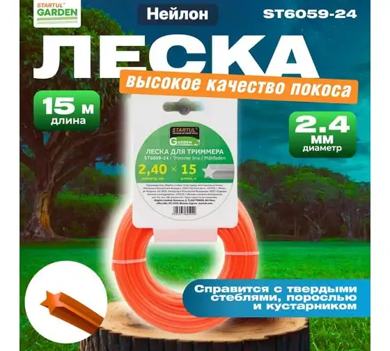 Леска для триммера Garden 2.4 мм, 15 м, сечение шестигранное STARTUL ST6050-24