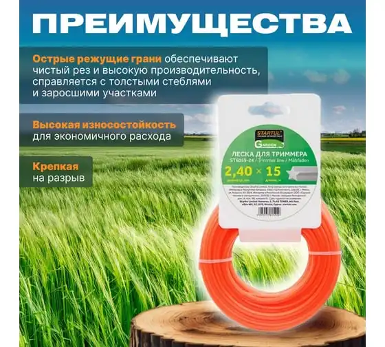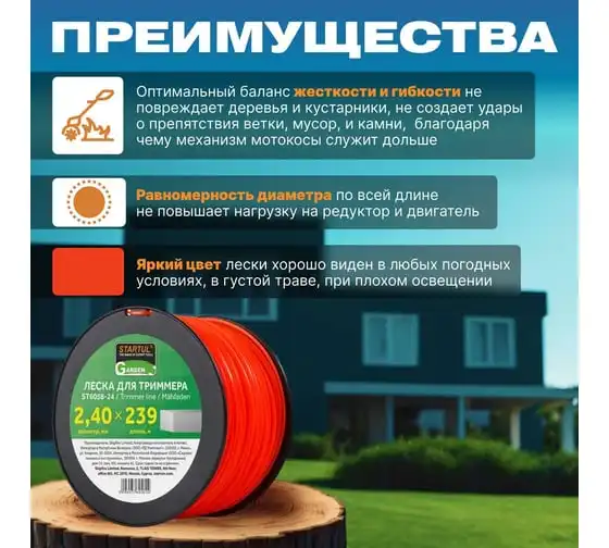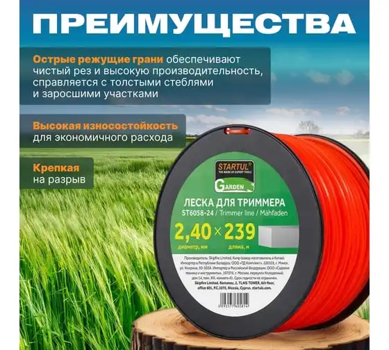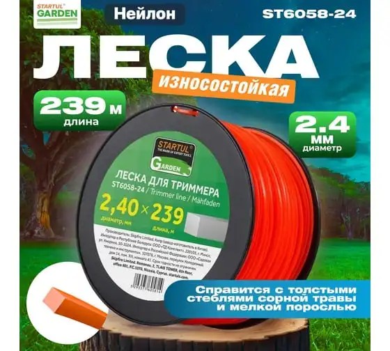 Леска для триммера Garden 2.4 мм, 239 м, сечение квадрат STARTUL ST6058-24