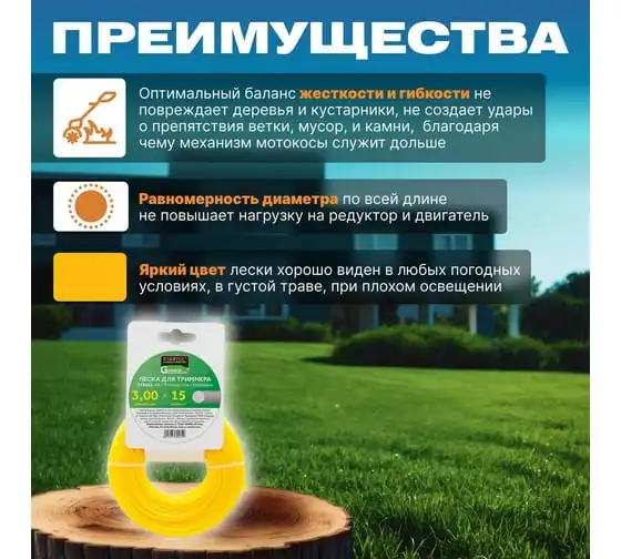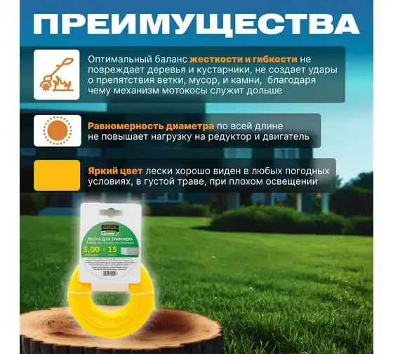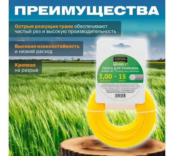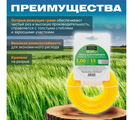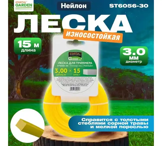 Леска для триммера Garden 3 мм, 15 м, сечение квадрат STARTUL ST6056-30