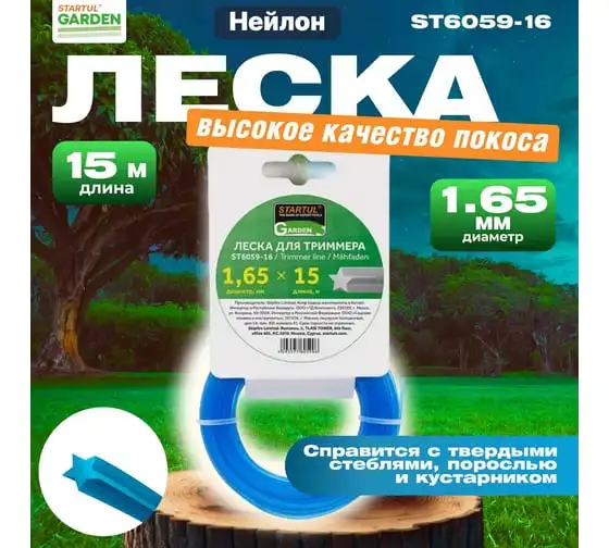 Леска для триммера Garden 1.65 мм, 15 м, сечение квадрат STARTUL ST6056-16