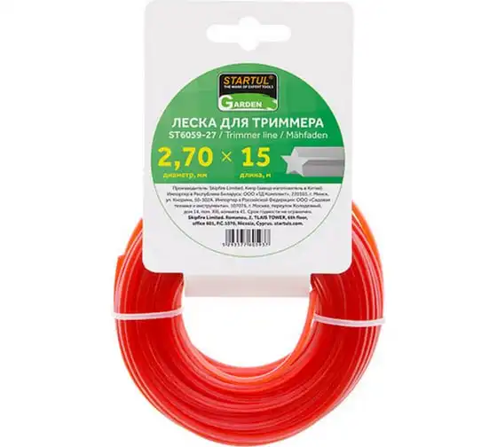 Леска для триммера Garden 2.7 мм, 15 м, сечение звездочка STARTUL ST6059-27