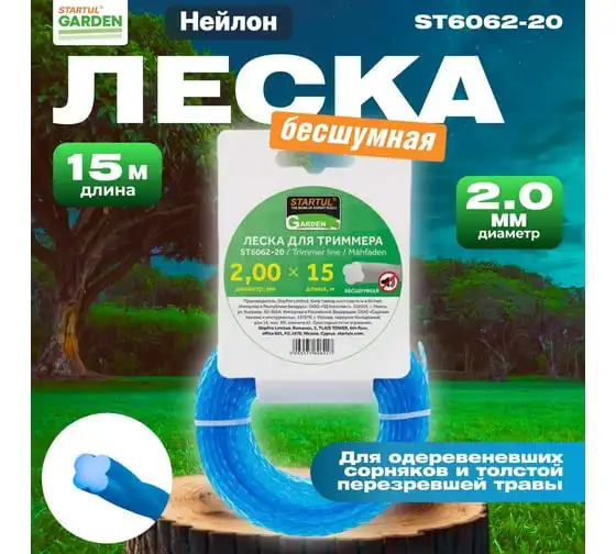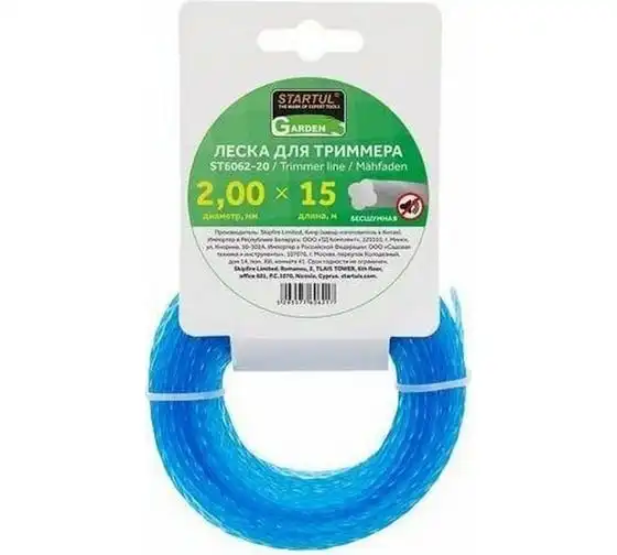 Леска для триммера Garden 2 мм, 15 м, сечение квадрат STARTUL ST6056-20