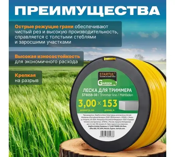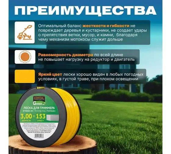 Леска для триммера Garden 3 мм, 153 м, сечение квадрат STARTUL ST6058-30