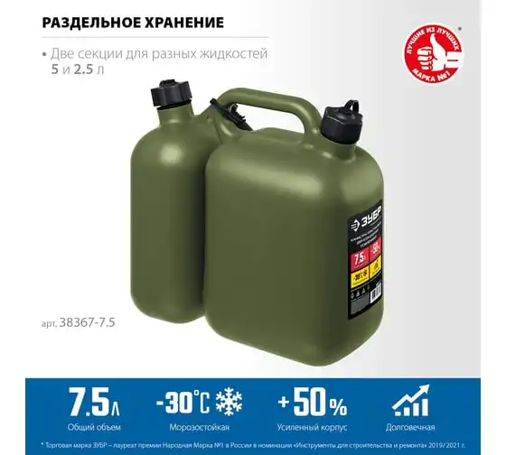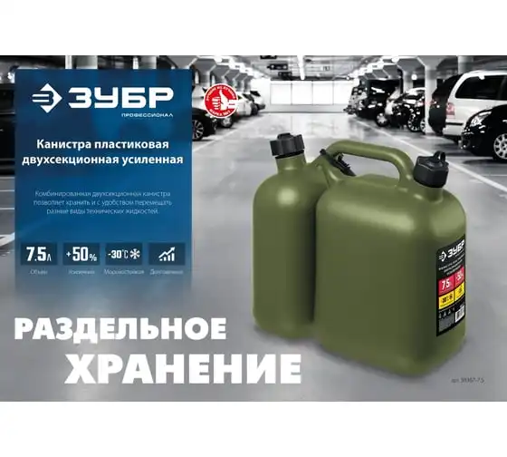 Пластиковая усиленная двухсекционная канистра ЗУБР Профессионал 5 + 2.5 л 38367-7.5